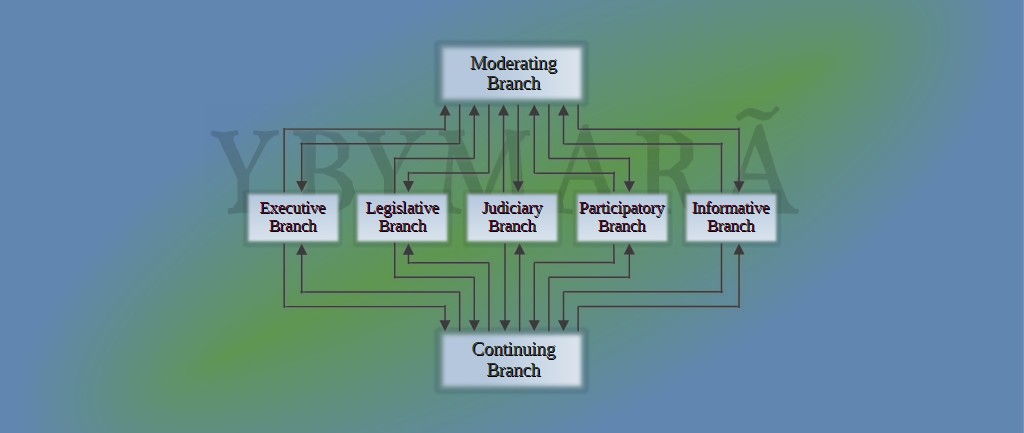 Continuing Branch – It has the power to oversee and enforce the continuity of actions of any branch of government in any situation, especially when mandates change. In this regard, it is superior to the other branches. It is composed of an independent permanent commission, with no predefined leader, composed of members from the people, government, and business.